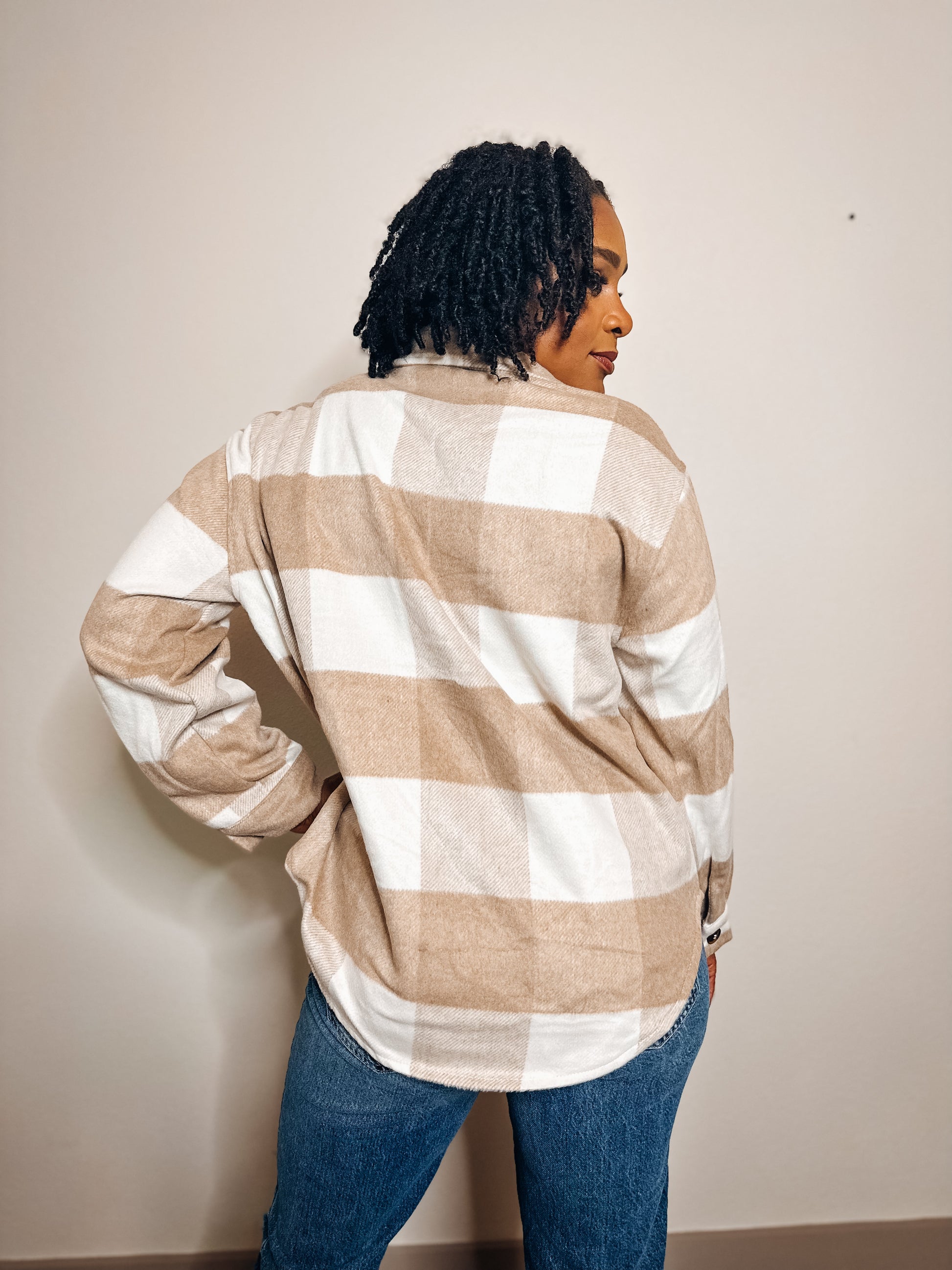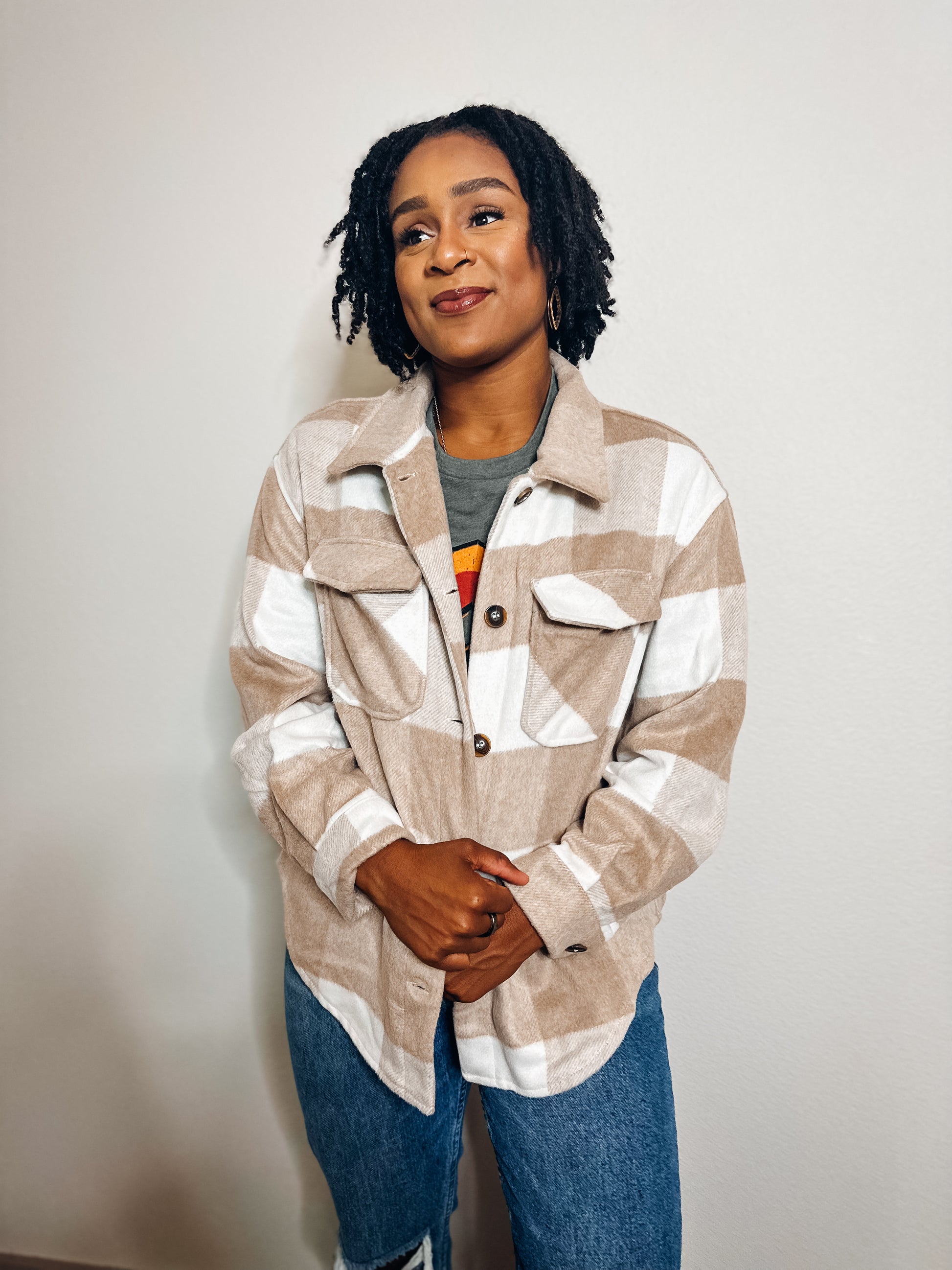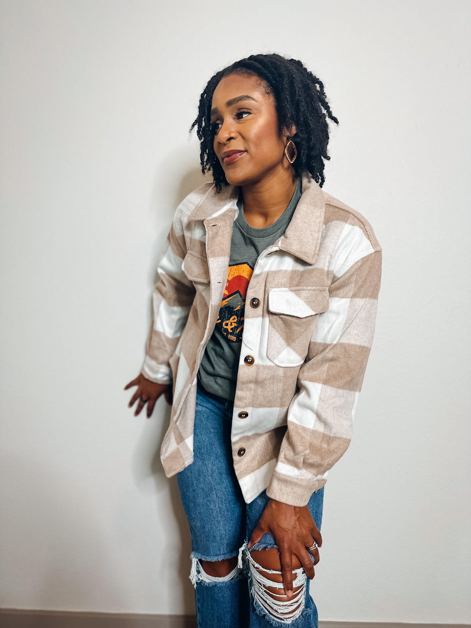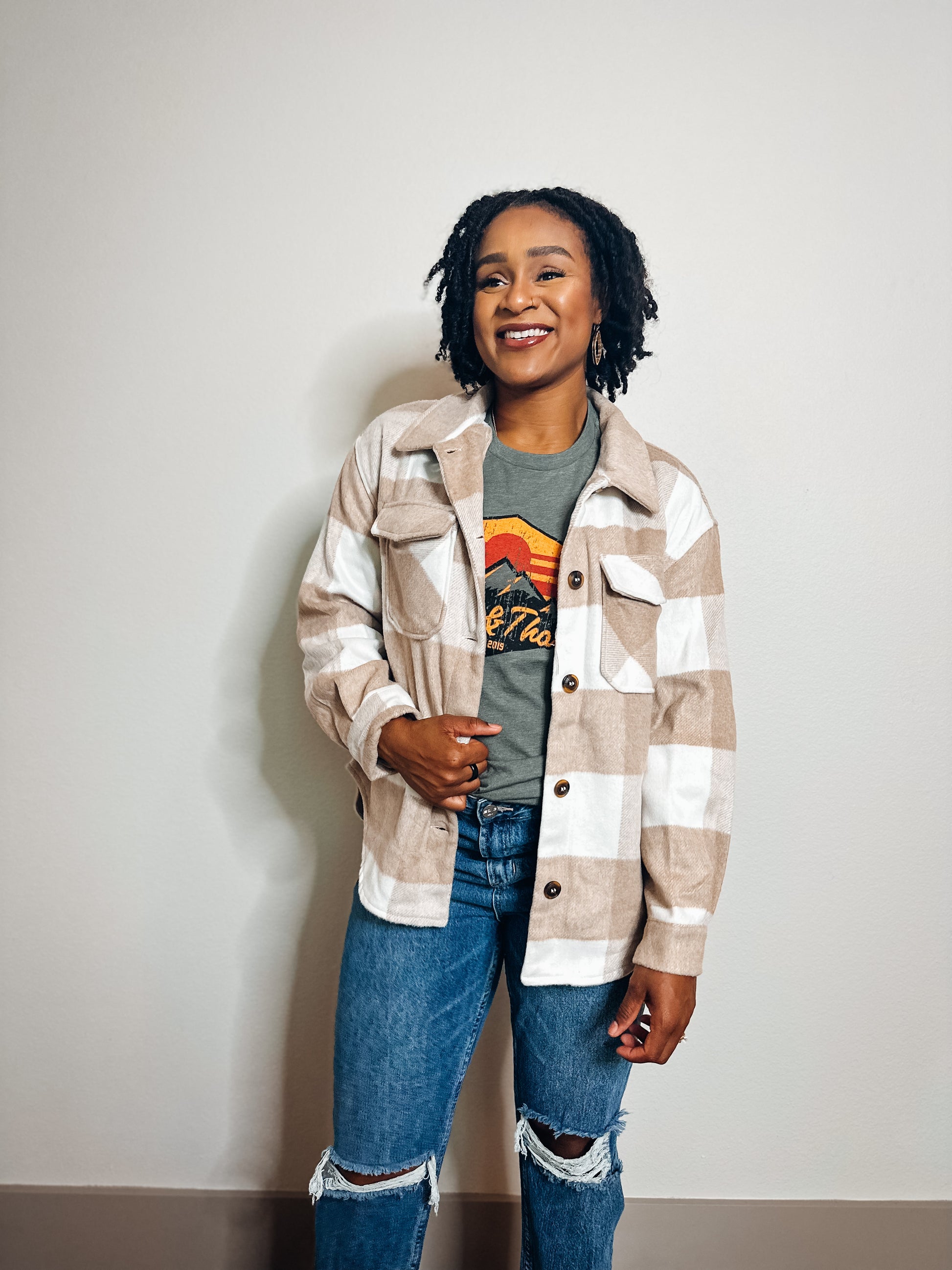 Embrace warmth and style with our Cozy Cabin Shacket, a versatile piece that combines the comfort of a shirt with the coziness of a jacket, perfect for adding a touch of rustic charm to your look.