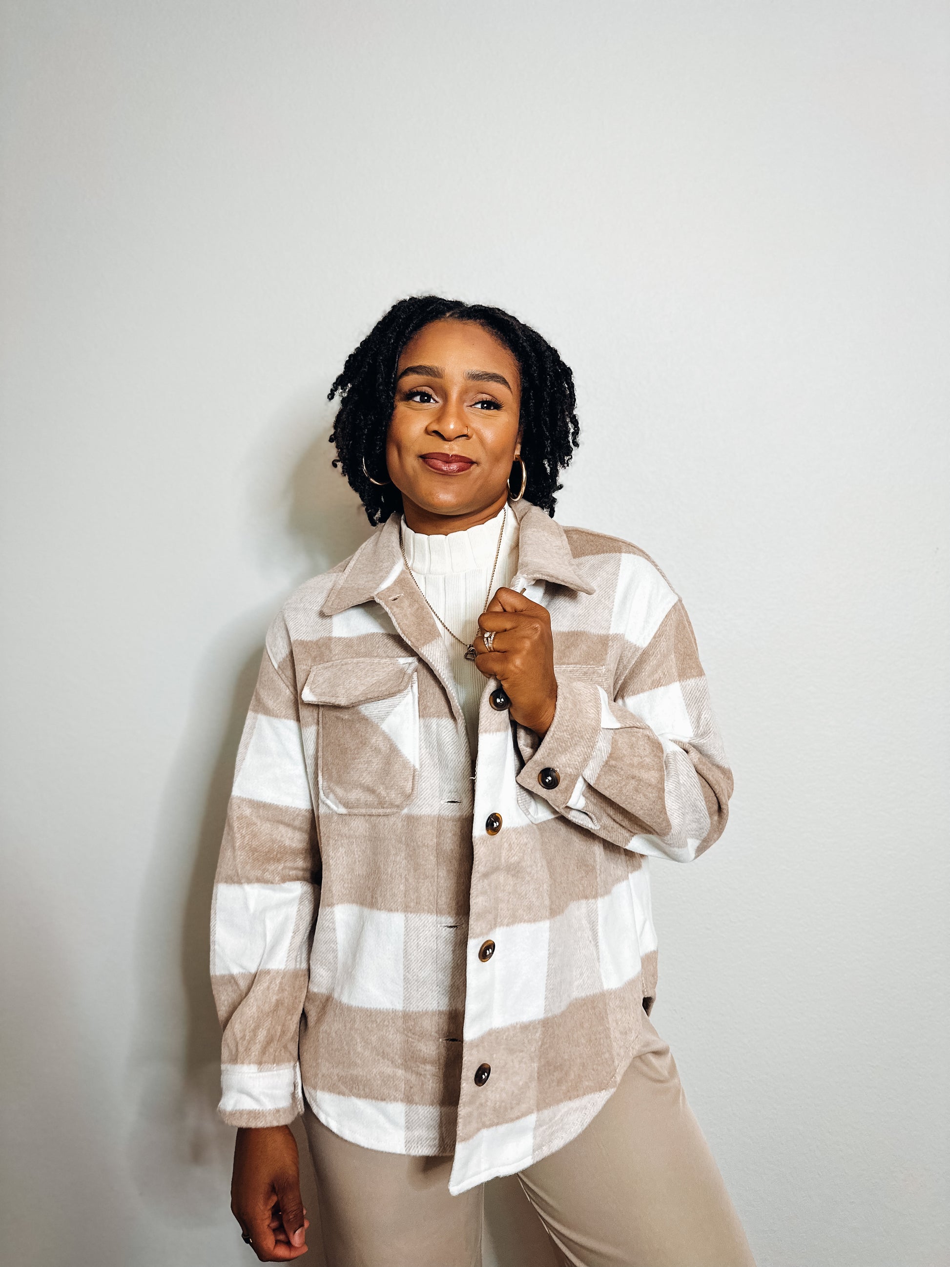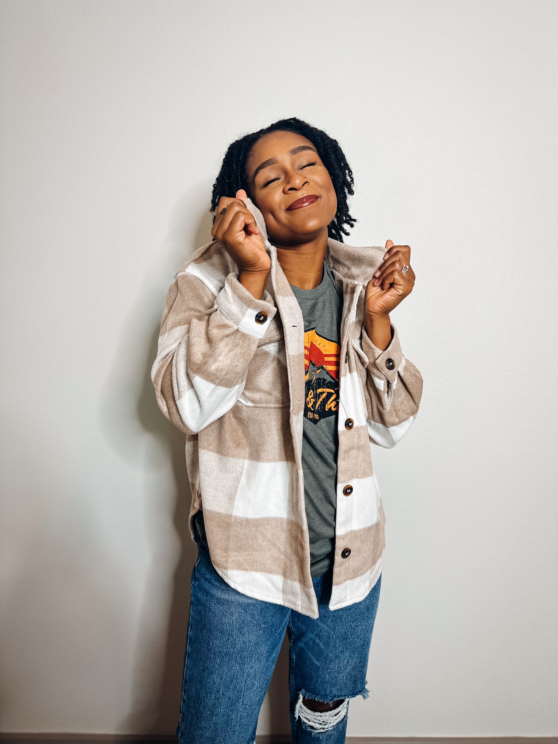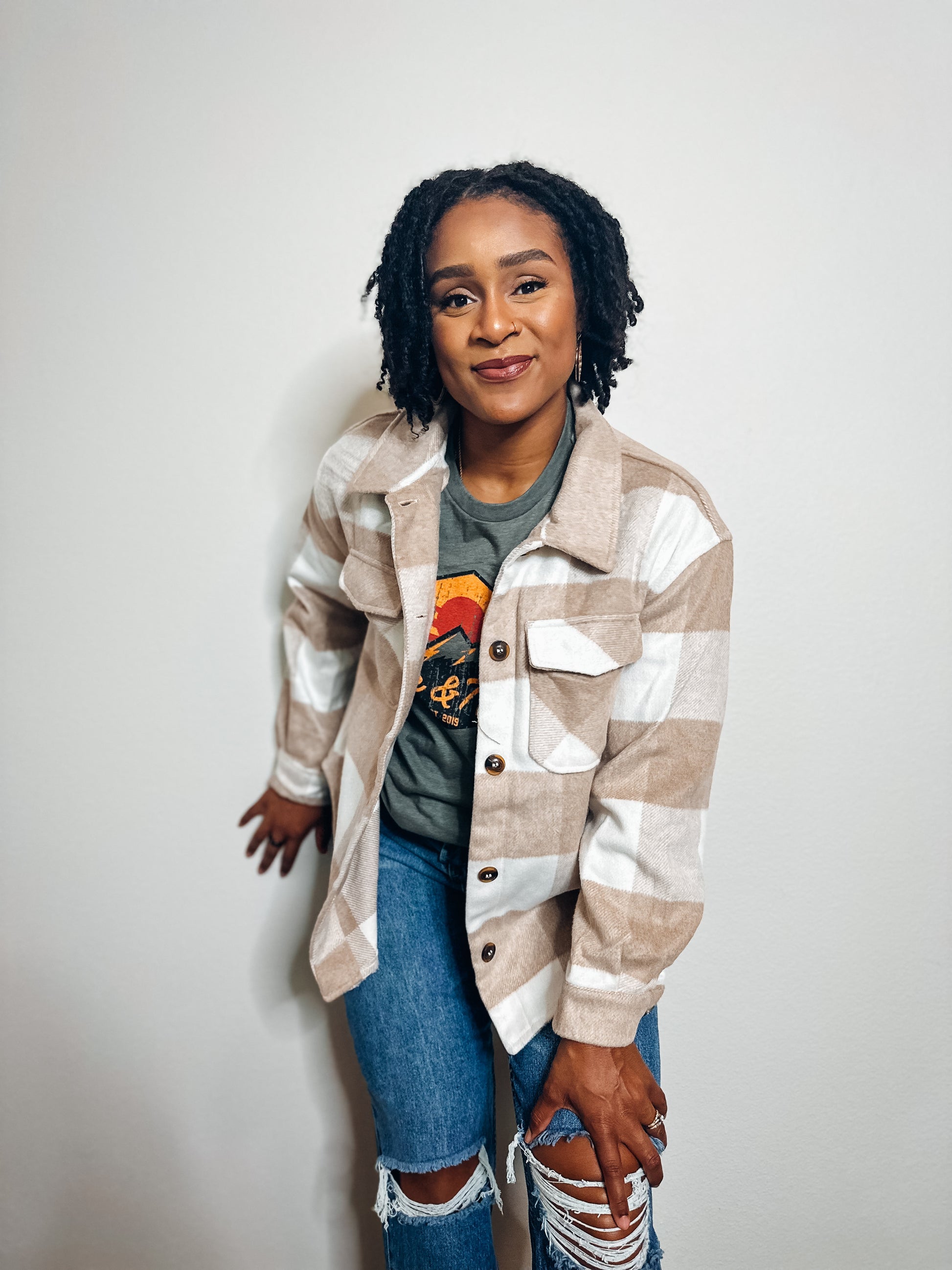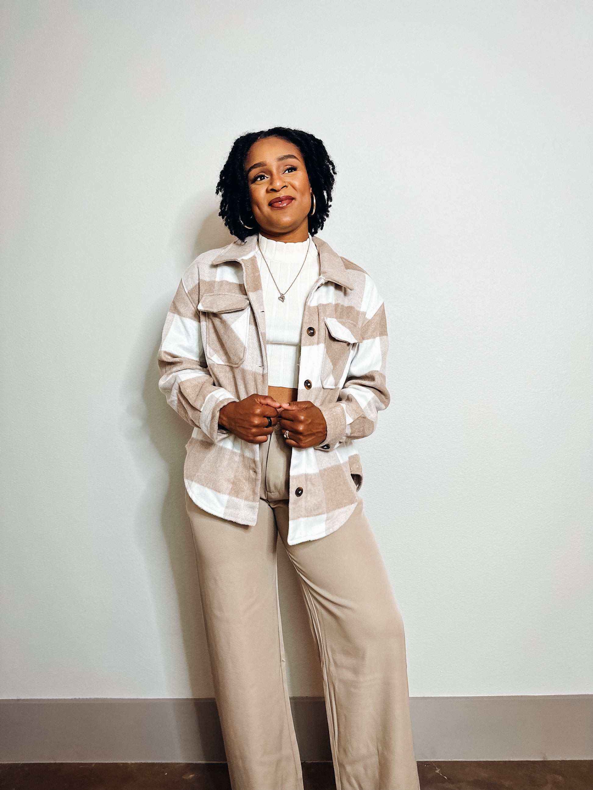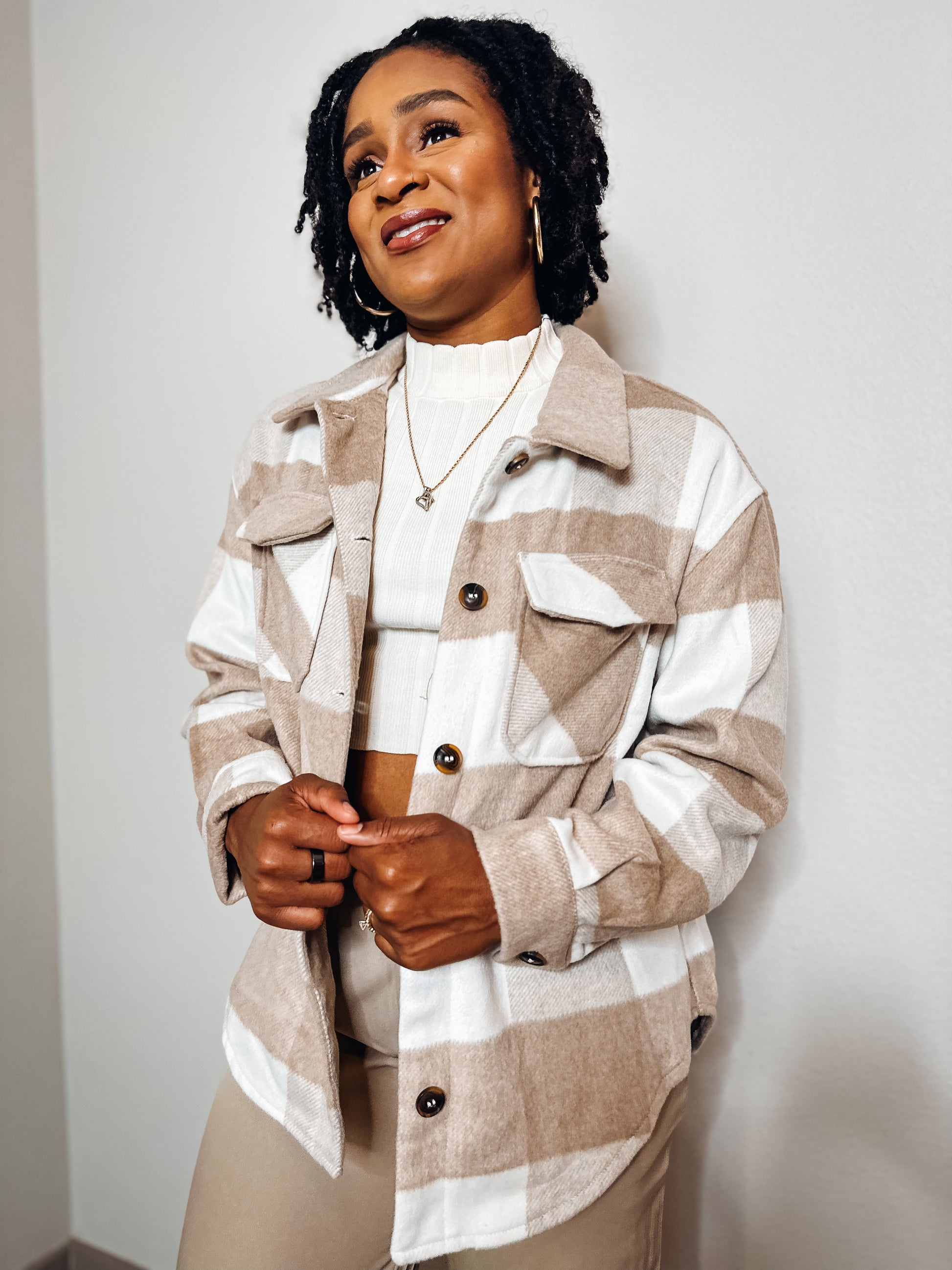 Embrace warmth and style with our Cozy Cabin Shacket, a versatile piece that combines the comfort of a shirt with the coziness of a jacket, perfect for adding a touch of rustic charm to your look.