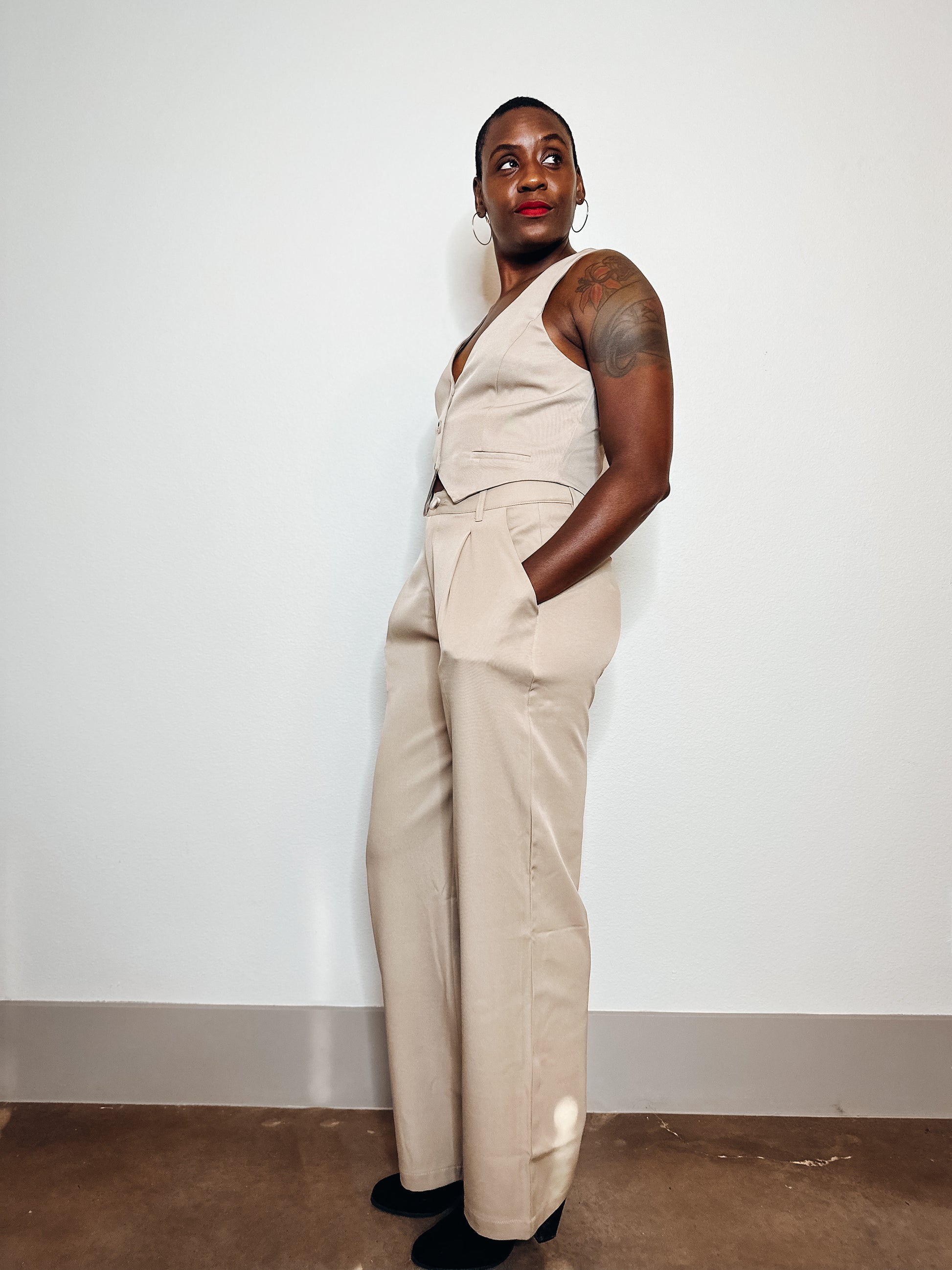 Indulge in classic sophistication and comfort with our hazelnut wide-leg trousers, a versatile wardrobe essential that combines a rich, warm hue with a flattering silhouette for effortless style on any occasion.